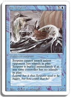 Serpent cannot attack unless opponent has islands in play. Serpent is buried immediately if at any time controller has no islands in play.