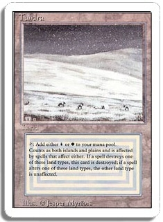 <T>: Add either <U> or <W> to your mana pool. Counts as both islands and plains and is affected by spells that affect either. If a spell destroys one of these land types, this card is destroyed; if a spell alters one of these land types, the other land type is unaffected.