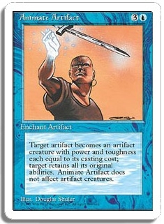 Target artifact becomes an artifact creature with power and toughness each equal to its casting cost; target retains all of its original abilities. Animate Artifact does not affect artifact creatures.