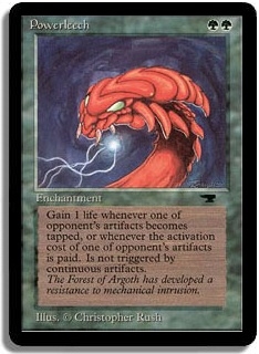 Gain 1 life whenever one of opponent's artifacts becomes tapped, or whenever the activation cost of one of opponent's artifacts is paid. Is not triggered by continuous artifacts.