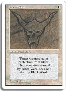 Target creature gains protection from black. The protection granted by Black Ward does not destroy Black Ward.