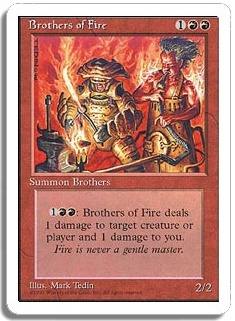 <1RR>: Brothers of Fire deals 1 damage to target creature or player and 1 damage to you.