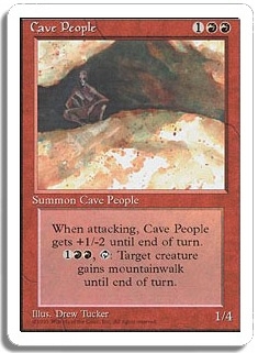 When attacking, Cave People gets +1/-2 until end of turn. <1RR,T>: Target creature gains mountainwalk until end of turn.