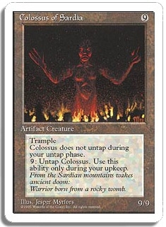 Trample. Colossus does not untap during your untap phase. <9>: Untap Colossus. Use this ability only during your upkeep.