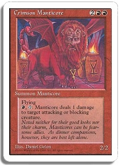 Flying. <R,T>: Manticore deals 1 damage to target attacking or blocking creature.