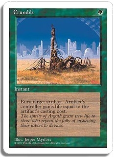 Bury target artifact. Artifact's controller gains life equal to the artifact's casting cost.