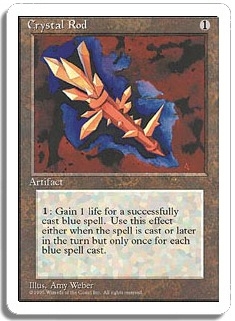 <1>: Gain 1 life for a successfully cast blue spell. Use this effect either when the spell is cast or later in the turn but only once for each blue spell cast.