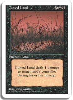 Cursed Land deals 1 damage to target land's controller during his or her upkeep.