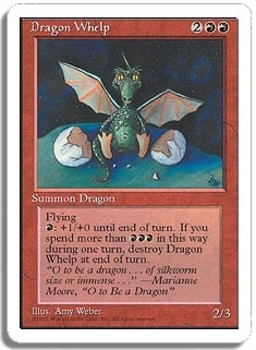 Flying. <R>: +1/+0 until end of turn. If you spend more than <RRR> in this way during one turn, destroy Dragon Whelp at end of turn.