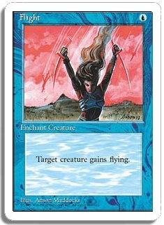 Target creature gains flying.