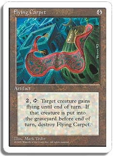 <2,T>: Target creature gains flying until end of turn. If that creature is put into the graveyard before end of turn, destroy Flying Carpet.