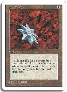 <1>: Gain 1 life for a successfully cast red spell. Use this effect either when the spell is cast or later in the turn but only once for each red spell cast.