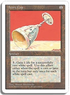 <1>: Gain 1 life for a successfully cast white spell. Use this effect either when the spell is cast or later in the turn but only once for each white spell cast.
