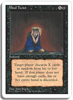 Target player discards X cards at random from his or her hand. If that player does not have enough cards, his or her entire hand is discarded.