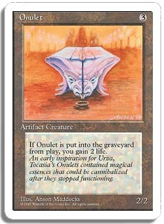 If Onulet is put into the graveyard from play, you gain 2 life.