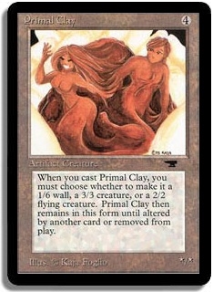 When Primal Clay comes into play, choose whether to make it a 1/6 wall, a 2/2 creature with flying, or a 3/3 creature.