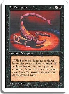 If Pit Scorpion damages a player, he or she gets a poison counter. If a player has ten or more poison counters, he or she loses the game.