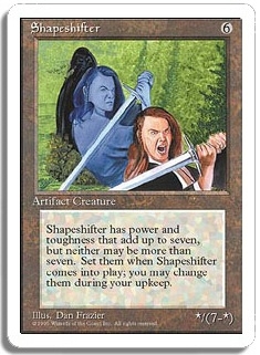Shapeshifter has power and toughness that add up to seven, but neither may be more than seven. Set them when Shapeshifter comes into play; you may change them during your upkeep.