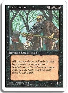 All damage done to Uncle Istvan by creatures is reduced to 0.