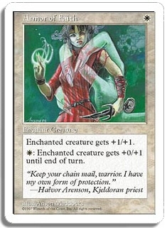 Enchanted creature gets +1/+1. <W>: Enchanted creature gets +0/+1 until end of turn.