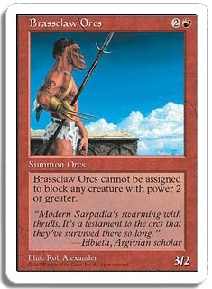 Brassclaw Orcs cannot be assigned to block any creature with power 2 or greater.