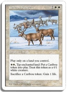 Play only on a land you control. <WW,Tap enchanted land>: Put a Caribou token into play. Treat this token as a 0/1 white creature. <Sacrifice a Caribou token>: Gain 1 life.