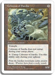 Trample. Colossus of Sardia does not untap during your untap phase. <9>: Untap Colossus of Sardia. Use this ability only during your upkeep.