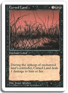 During the upkeep of enchanted land's controller, Cursed Land deals 1 damage to him or her.