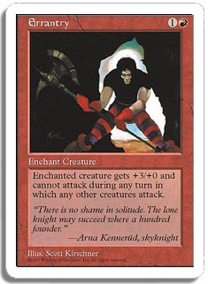 Enchanted creature gets +3/+0 and cannot attack during any turn in which any other creatures attack.