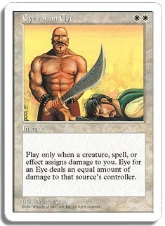Play only when a creature, spell, or effect assigns damage to you. Eye for an Eye deals an equal amount of damage to that source's controller.