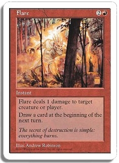 Flare deals 1 damage to target creature or player. Draw a card at the beginning of the next turn.