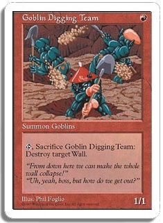 <T,Sacrifice Goblin Digging Team>: Destroy target Wall.