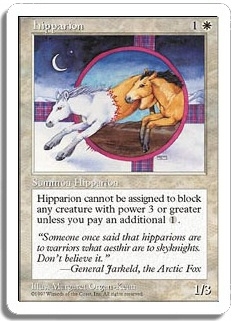 Hipparion cannot be assigned to block any creature with power 3 or greater unless you pay an additional <1>.