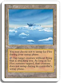 You may choose not to untap Ice Floe during your untap phase. <T>: Tap target creature without flying that is attacking you. As long as Ice Floe remains tapped, that creature does not untap during its controller's untap phase.