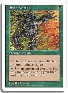 Enchanted creature is unaffected by summoning sickness. <0>: Untap enchanted creature. Use this ability only during your turn and only once each turn.