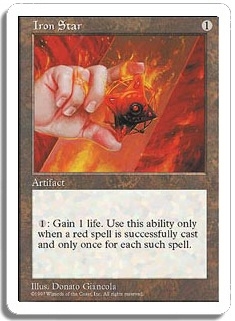 <1>: Gain 1 life. Use this ability only when a red spell is successfully cast and only once for each such spell.
