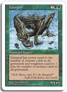 Lhurgoyf has power equal to the number of creature cards in all graveyards and toughness equal to 1 plus the number of creature cards in all graveyards.