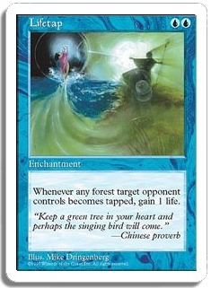 Whenever any forest target opponent controls becomes tapped, gain 1 life.