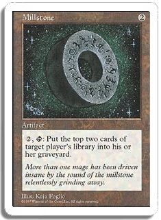 <2,T>: Put the top two cards of target player's library into his or her graveyard.