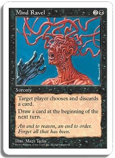 Target player chooses and discards a card. Draw a card at the beginning of the next turn.