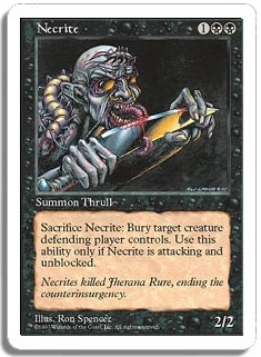<Sacrifice Necrite>: Bury target creature defending player controls. Use this ability only if Necrite is attacking and unblocked.