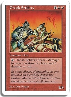 <T>: Orcish Artillery deals 2 damage to target creature or player and 3 damage to you.
