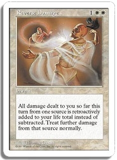All damage dealt to you so far this turn from one source is retroactively added to your life total instead of subtracted. Treat further damage from that source normally.