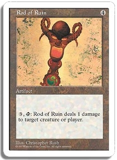 <3,T>: Rod of Ruin deals 1 damage to target creature or player.