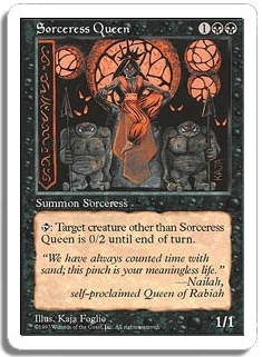 <T>: Target creature other than Sorceress Queen is 0/2 until end of turn.