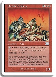 T: Orcish Artillery deals 2 damage to target creature or player and 3 damage to you.