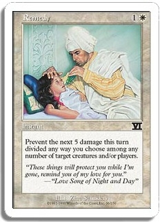 Prevent the next 5 damage that would be dealt this turn to any number of target creatures and/or players, divided as you choose.