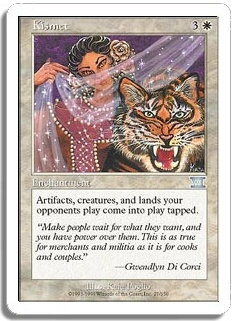 Artifacts, creatures, and lands your opponents control come into play tapped.