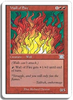 (Walls can't attack.) R: Wall of Fire gets +1/+0 until end of turn.