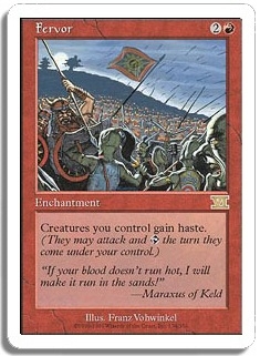 Creatures you control have haste. (They may attack and T the turn they come under your control.)
